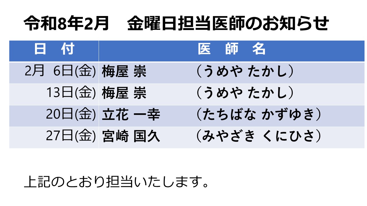 令和8年2月 金曜日担当医について